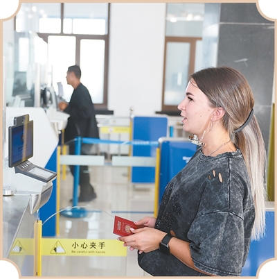 7月12日,俄罗斯游客在萝北出入境边防检查站通关。